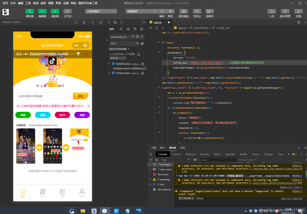 给大家分享一个独立去水印小程序源码,这款是某群友送的,无授权随意搭建,里面数据库里填了自己买的接口。